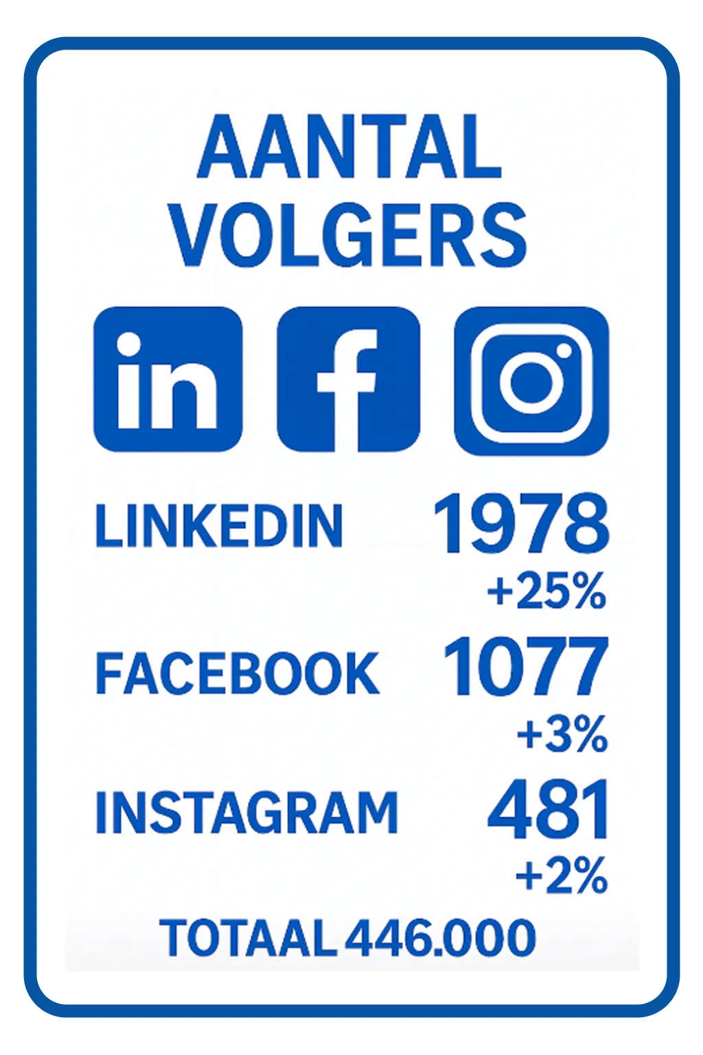 Achter onze impact schuilen echte mensen en echte resultaten. Van het aantal medewerkers tot het aantal uitgevoerde opdrachten: deze cijfers tonen waar we vandaag staan - en waar we samen naartoe groeien. Transparant, ambitieus en altijd met zorg voor mens en klant.